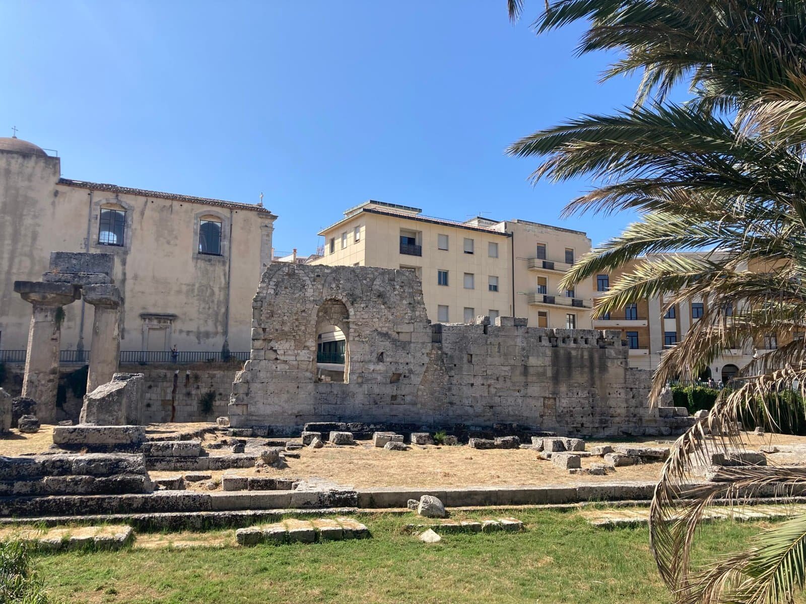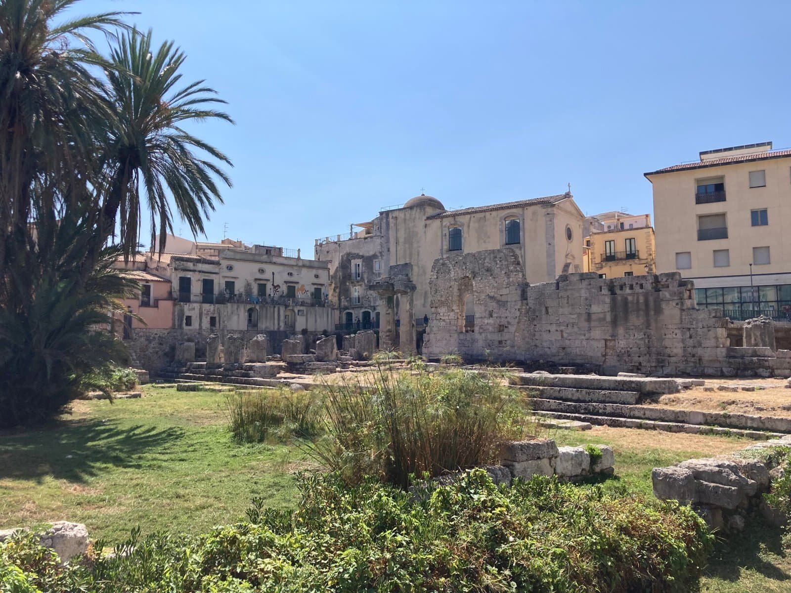 De Tempel van Apollo in Ortigia is een van de oudste Griekse tempels van Sicilië. Vandaag de dag is het een ruïne waarbij vooral de indrukwekkende zuilen overgebleven zijn. Als je je bedenkt hoe oud het is (zo’n 2600 jaar), is het überhaupt een wonder dat er nog wat overeind staat.
