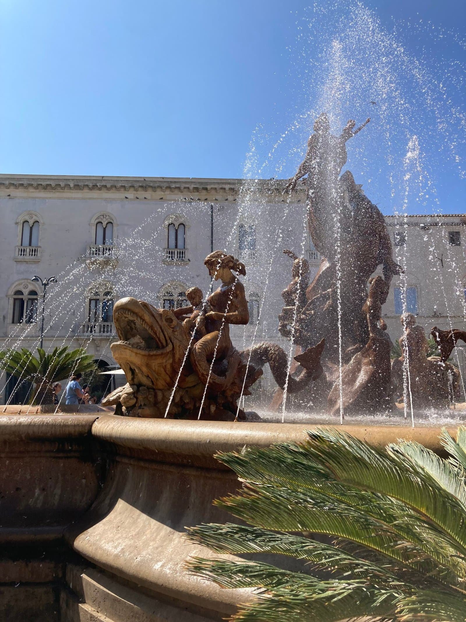 De Fontein van Arethusa is ook een bezoek waard. Deze zoetwaterbron ligt direct aan de kust in Ortigia. Volgens de mythe veranderde de nimf Aretusa hier in water om aan de god Alpheus te ontsnappen. Tegenwoordig zwemmen er vooral eenden en vissen tussen de papyrusplanten.